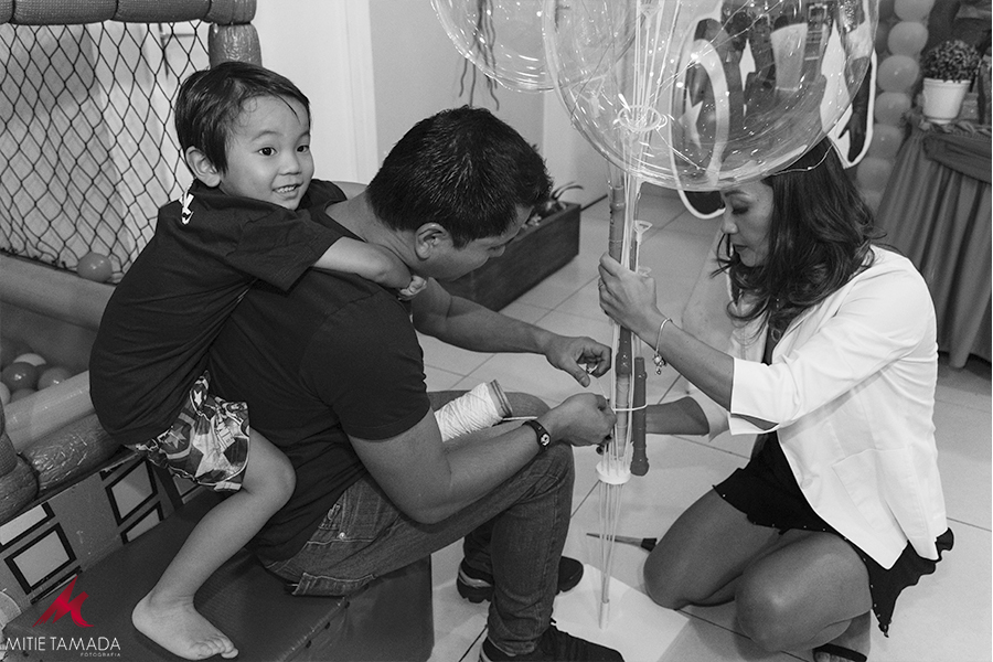 A super mamãe fez os deliciosos docinhos e revelou seus dotes artísticos secretos nas lembrancinhas fofas, onde colocou toda sua ternura. O super papai coruja ajudou a mamãe em tudo, mas encher os balões não é o seu forte, ainda mais queimando o compressor na tomada 220V hihihi...