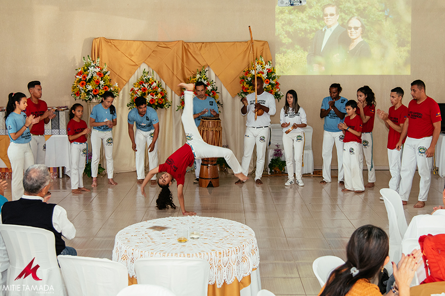 Mas para suas Bodas de Ouro o casal Higo se planejou bem e conseguiu juntar amigos e parentes do Brasil e do Japão para celebrar seus 50 anos de casados. Num clima bem descontraído e no seu próprio galpão, fizeram a renovação de votos e foram homenageados por todos seus entes queridos.